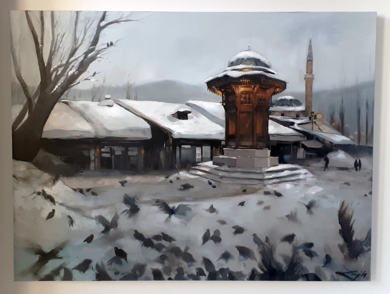 I graduated with a Bachelor’s in Fine Arts, majoring in painting, at the Alberta University of the Arts in 2013. Below is some work I’ve created over the years which explores a multitude of subjects, namely my experience as a child growing up in the war torn Balkans in the 90s. I enjoy painting on a large scale with oil paints and mixed media.